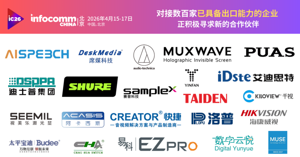 北京InfoComm China 2026将于4月15日至17日在国家会议中心(CNCC)盛大启幕,不仅标志着北京InfoComm China品牌迎来二十周年里程碑,也为2027年第二十届北京InfoComm China展会奏响序章。